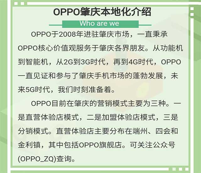 本公司主要從事手機(jī)零售及中國移動、中國電信、中國聯(lián)通相關(guān)運(yùn)營業(yè)務(wù)。主要以O(shè)PPO官方授權(quán)體驗店為核心。這里有讓你大展拳腳的平臺,這里有同心協(xié)力的團(tuán)隊,這里有更高的晉升空間。OPPO官方授權(quán)體驗店歡迎你的加入。
