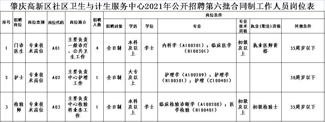 肇慶高新區(qū)社區(qū)衛(wèi)生與計生服務中心2021年公開招聘第六批合同制工作人員的公告