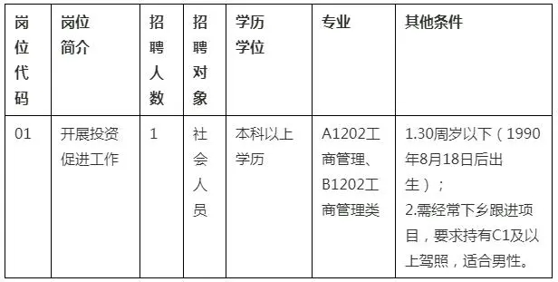 本次共招聘專項工作隊員1名。招聘崗位條件如下: