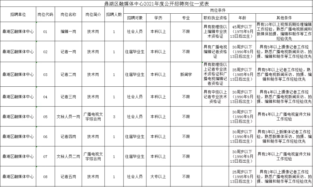 招聘對(duì)象為社會(huì)人員。報(bào)考人員必須于報(bào)名之日前已取得招聘崗位所要求具備的相應(yīng)畢業(yè)證、資格證及工作經(jīng)歷等。