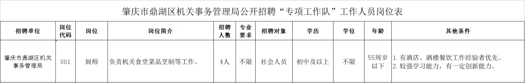 肇慶市鼎湖區(qū)機(jī)關(guān)事務(wù)管理局公開招聘“專項工作隊”工作人員公告