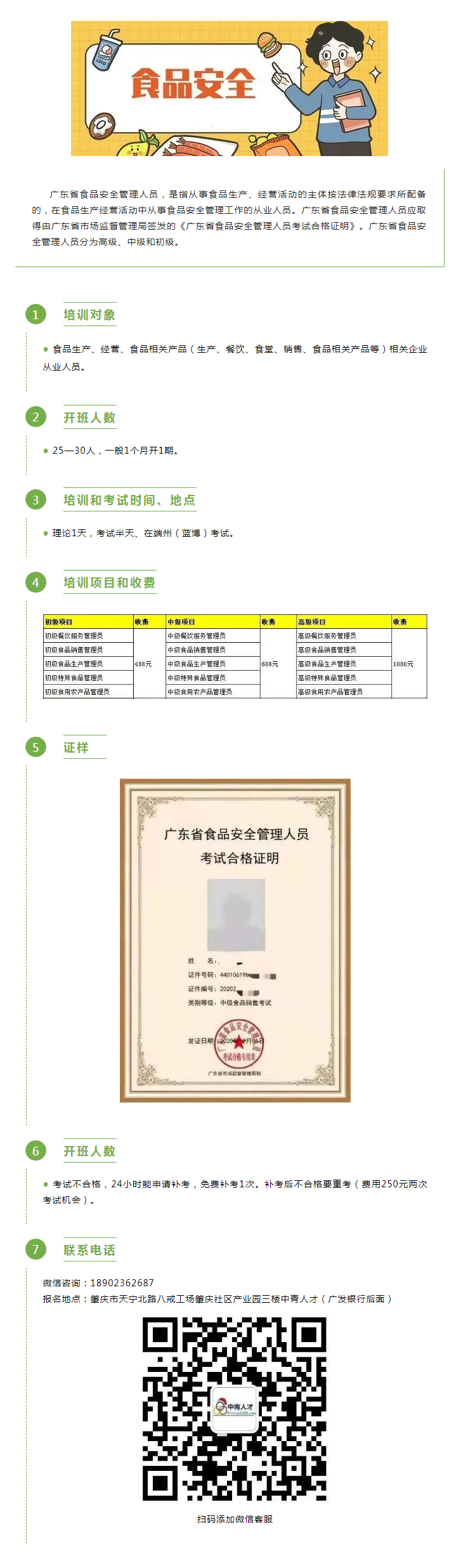 肇慶食品安全管理人員開考啦!理論培訓(xùn)考試,免費補考1次,快來報名!