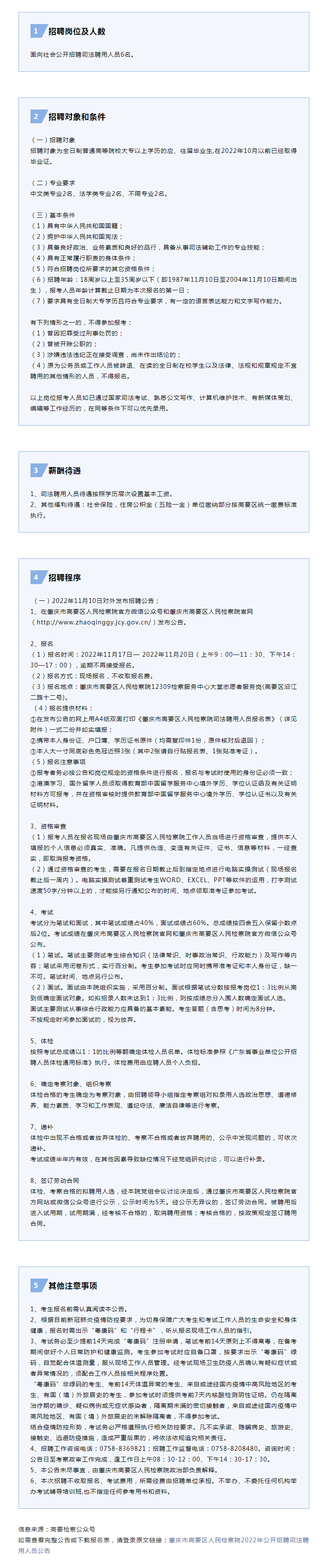 肇慶市高要區(qū)人民檢察院2022年公開(kāi)招聘司法聘用人員公告