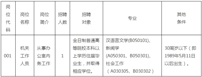 本次共招聘機(jī)關(guān)雇員1名。