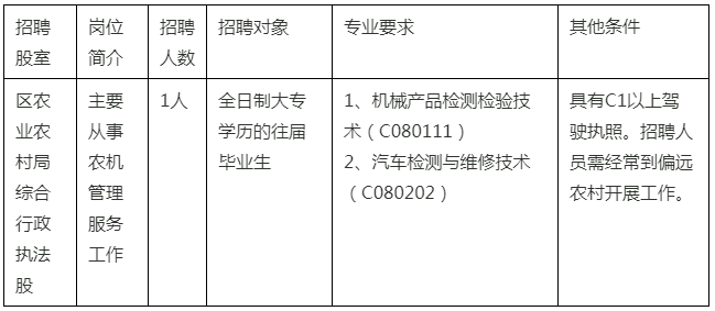 本次共招聘機(jī)關(guān)雇員1名,具體情況如下: